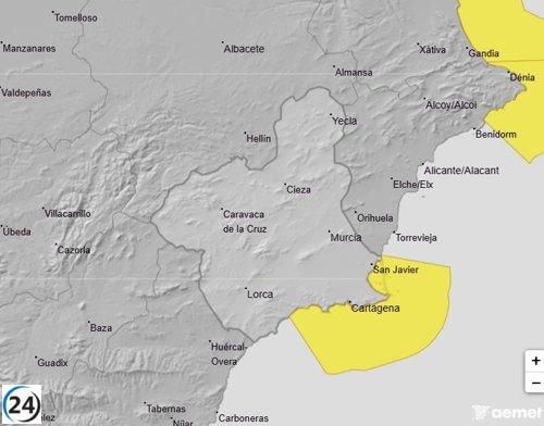 Alerta amarilla por fenómenos costeros en Campo de Cartagena y Mazarrón este martes.
